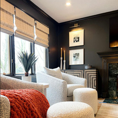 We added woven blinds to the windows of this client’s living room, and we feel that they really complete the look. This finishing touch adds more warmth and texture to the room, and makes it possible for the residents of this home to personalize the level of privacy and light let into the space.